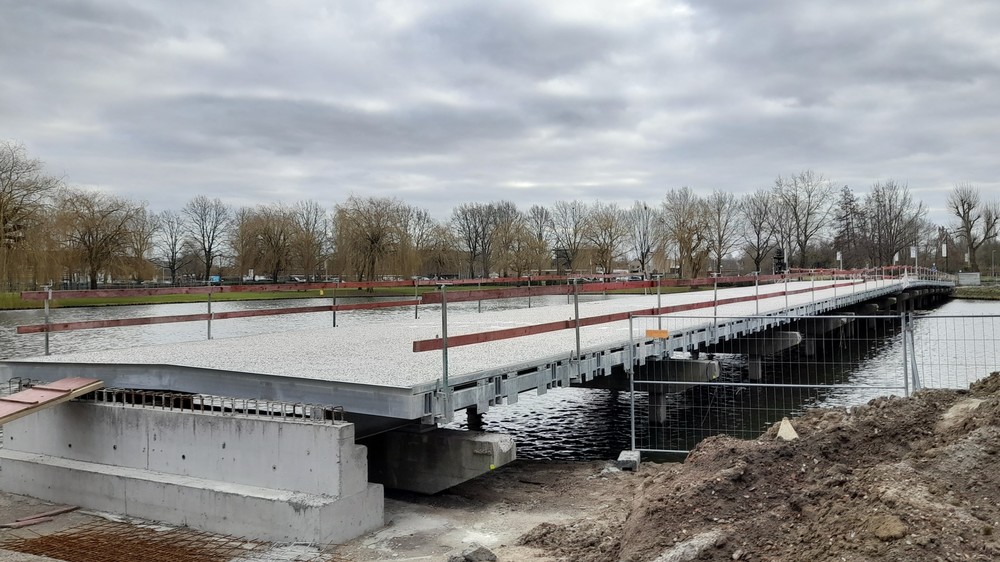 De Regenboogbrug werd tussen 2023 en juni 2024 volledig vernieuwd, met behoud van de originele pijlers uit 1957. Onze stabiliteitsstudie zorgde ervoor dat de nieuwe stalen brug veilig kon worden opgebouwd: in november 2023 werden de eerste segmenten geplaatst, waarna de afwerking in het voorjaar van 2024 volgde. De nieuwe brug is volledig voor fietsers en wandelaars en vormt opnieuw een sterke verbinding in het Regenboogpark.