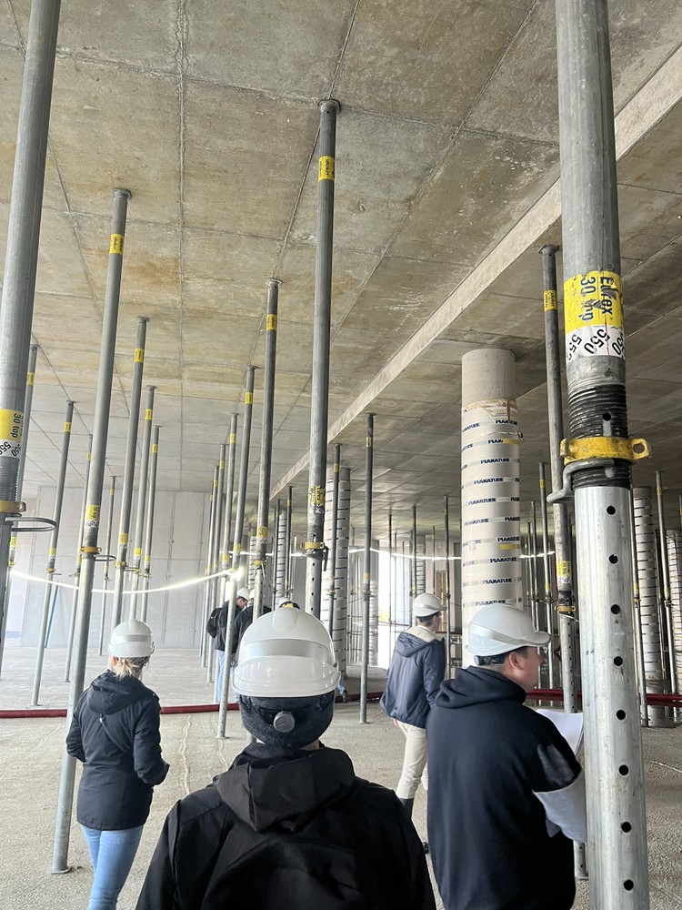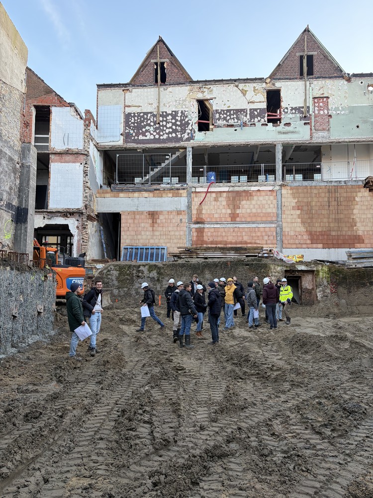Onze eerste stop was BULA. De grootte van de site, de fasering en de complexe werken sprongen meteen in het oog. Vooral de ondergrondse structuren en de toepassing van geothermie maakten duidelijk hoe uitdagend dit project is op vlak van stabiliteit.