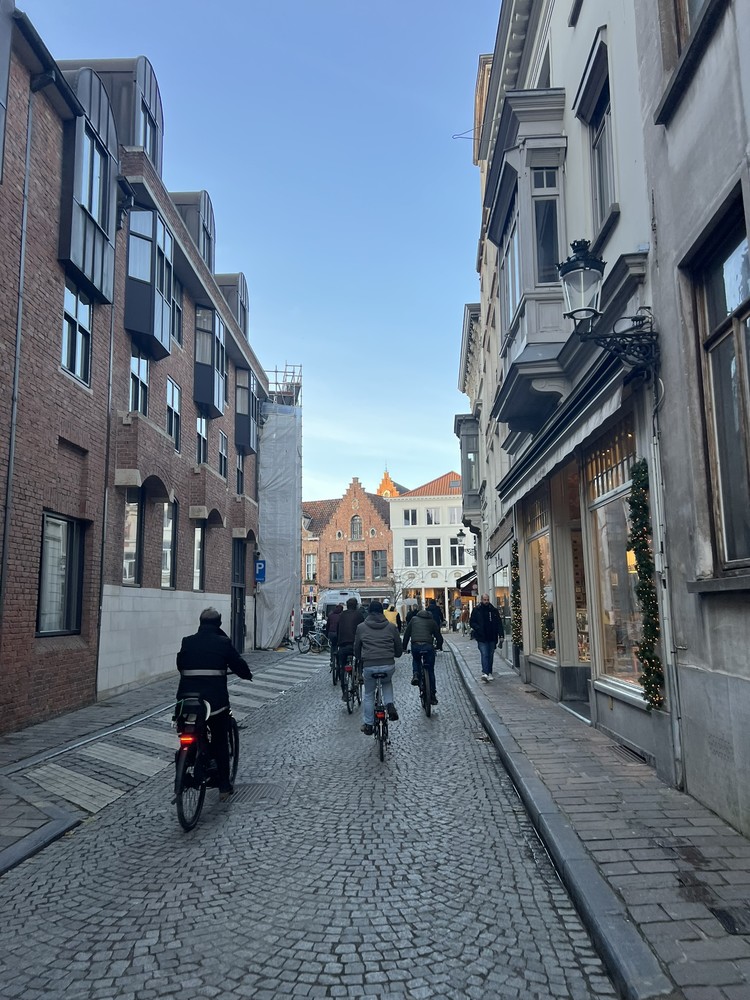 Op 19 december maakten we een fietstocht door Brugge langs drie heel verschillende projectlocaties. De rondrit liet goed zien hoe uiteenlopend de Brugse bouwprojecten zijn en hoe waardevol het is om ze ter plaatse technisch te bekijken.