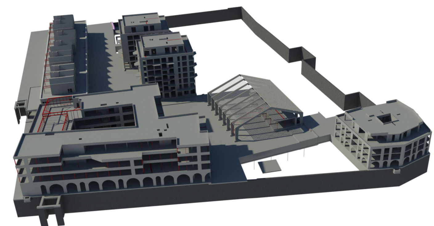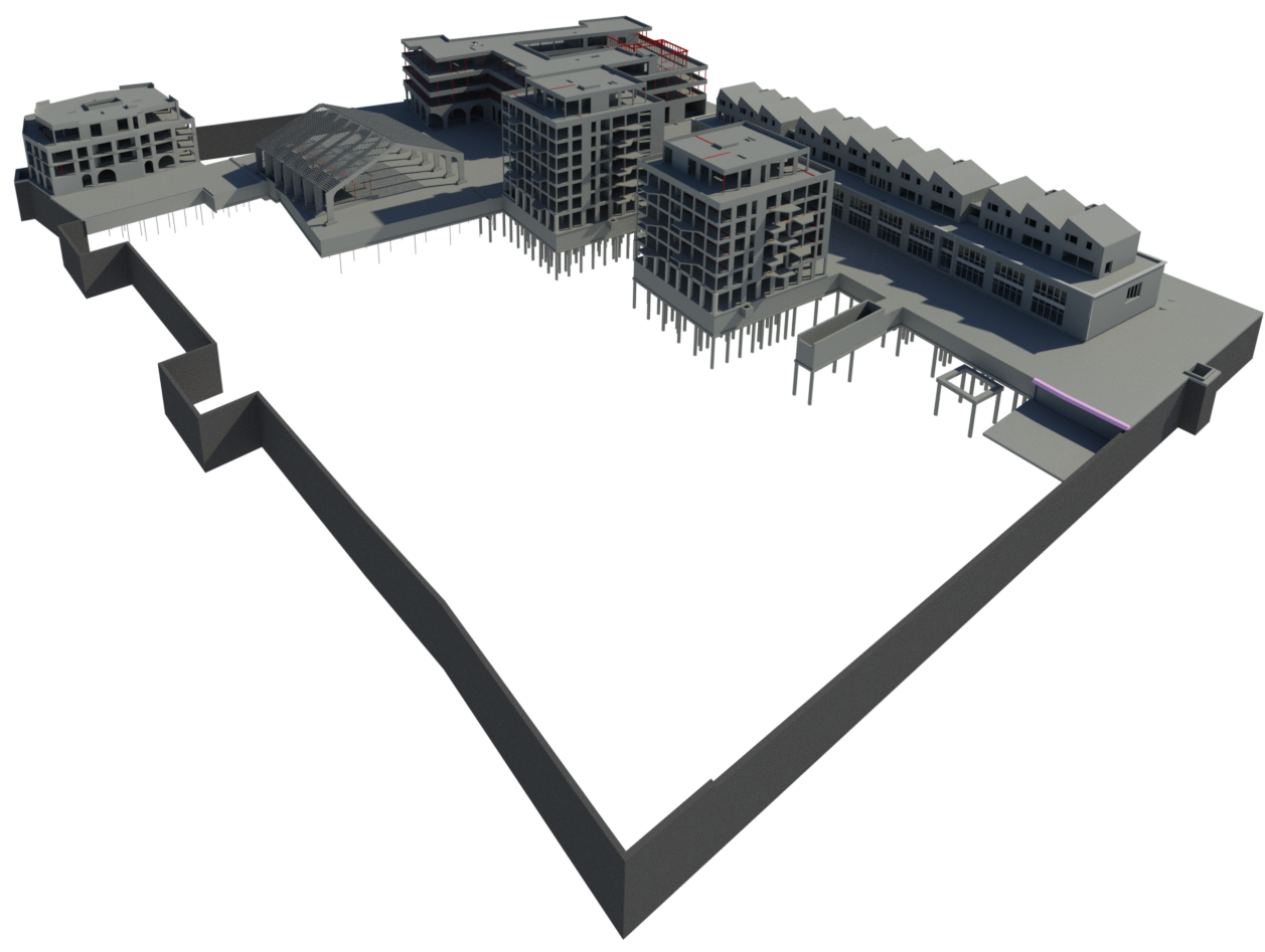 Op de Veemarkt-site in Brugge wordt het nieuwe bruisend stadsdorp Bula gerealiseerd. De eerste fase van dit bestaat uit zes gebouwen — De Commerce, De Moakers, De Torre, De Mart en Den Hoek — rond een centraal plein. Al deze volumes zijn met elkaar verbonden via een ondergrondse ruimte van 16.000 m², die plaats biedt aan parkeergelegenheid en diverse andere faciliteiten.