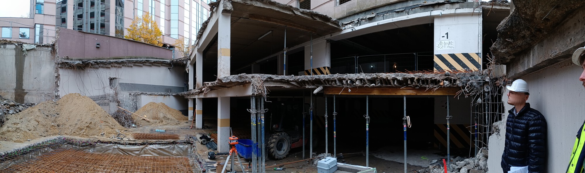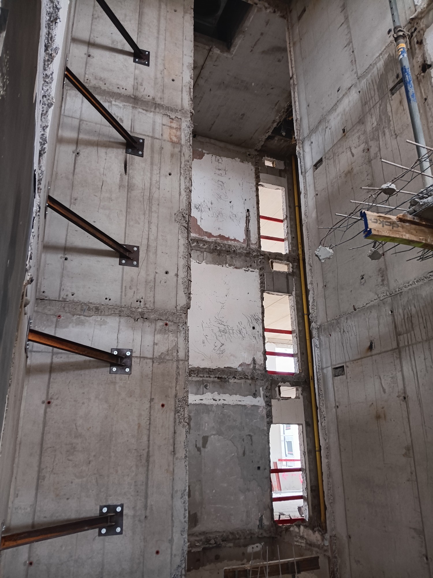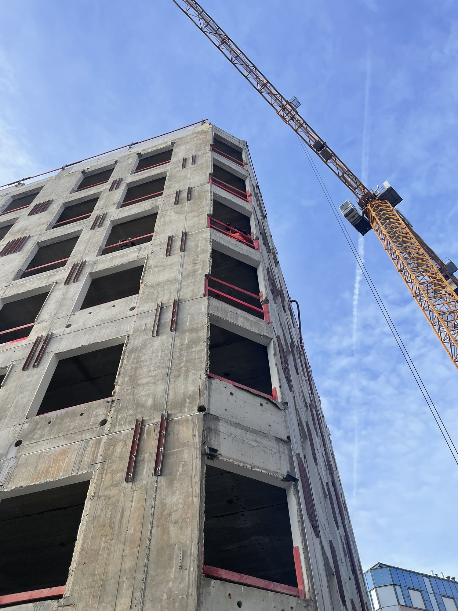 Het bestaande kantoorgebouw wordt volledig getransformeerd tot woonappartementen. De trappenkern ondergaat een grondige verbouwing om verschillende woonfuncties te kunnen opnemen. Nieuwe gevelopeningen zorgen voor toegang tot de buitenterrassen, die worden gedragen door een staalskelet dat op zijn beurt steunt op een structuur van kolommen en liggers in de parkeerkelder.